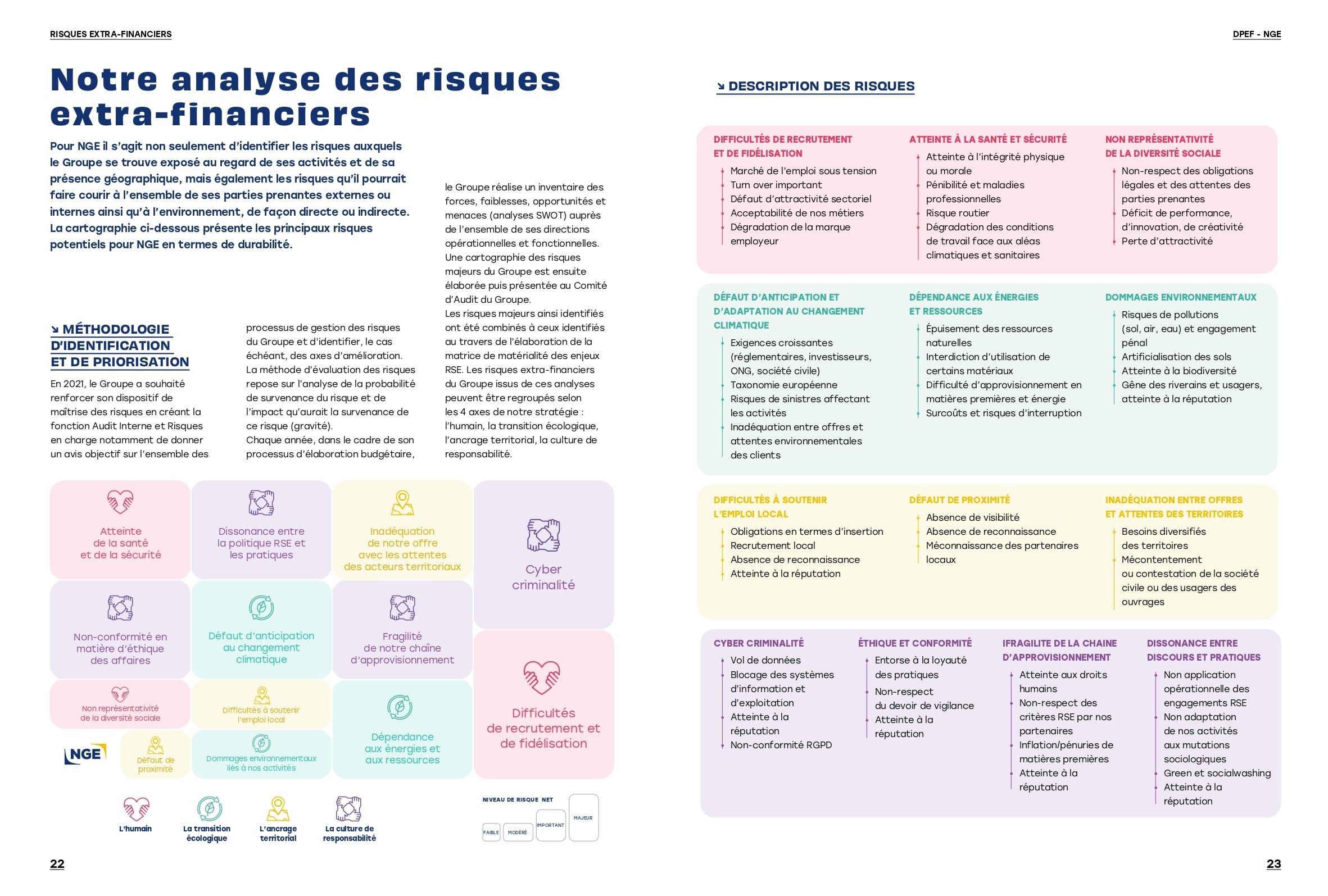 NGE sâattache Ă insuffler et ancrer des valeurs et des comportements Ă©thiques au sein de son Ă©cosystĂšme. Faire progresser la responsabilitĂ© sociĂ©tale du Groupe nĂ©cessite une dynamique participative de l’ensemble de ses parties prenantes.
